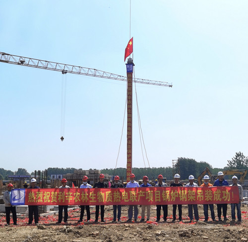 利辛县农林生物质热电联产项目锅炉钢架开始吊装