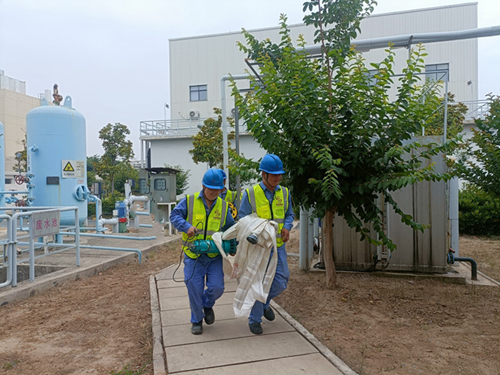 此次防洪防汛演练采用不提前发送通知、不提前打招呼的方式开展。演练模拟因突降暴雨,生产区域综合泵房发生汛情,需要紧急排涝的情况。各防洪防汛小组成员在接到险情后,第一时间赶到现场,迅速敷设排水管,增加排水泵,接上电源,紧急排涝,并对泵房内各渗、漏水处进行封堵。由于处理措施得当,综合泵房内的积水水位很快下降,快速解除了对综合泵房内工业水泵安全运行造成的威胁。整个演练过程,各小组成员反应迅速、有条不紊、配合密切,达到了预期效果,检验了公司各部门应对汛情的应急反应处置能力。