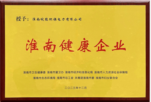 4月24日,淮南市卫生健康委、淮南市生态环境局等部门联合授予淮南皖能环保公司“淮南健康企业”荣誉称号。