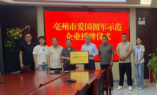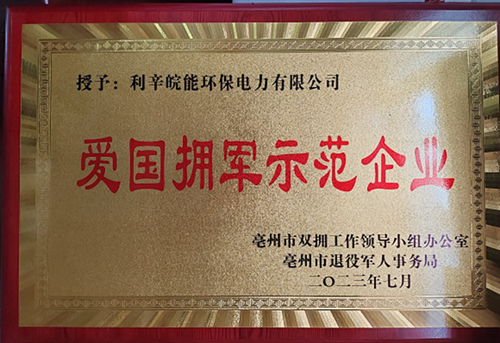 利辛皖能环保公司荣获亳州市“爱国拥军”示范企业称号