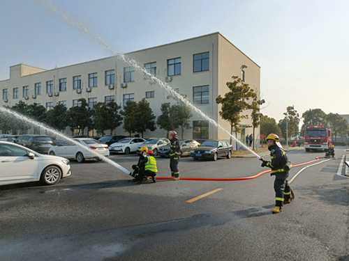 为了将所学知识付诸实践,培训人员“趁热打铁”,在培训结束后模拟化水车间楼内着火进行演练。消防控制室值班人员发现“火情”后,立即进行汇报,启动火灾事故应急预案,同时迅速拨打“119”报警。事故预警组、应急救援组、安全保障组等成员按照职责分工,有条不紊地疏散楼内职工,拉好隔离区域,使用灭火器材与消防车一同将大火扑灭。