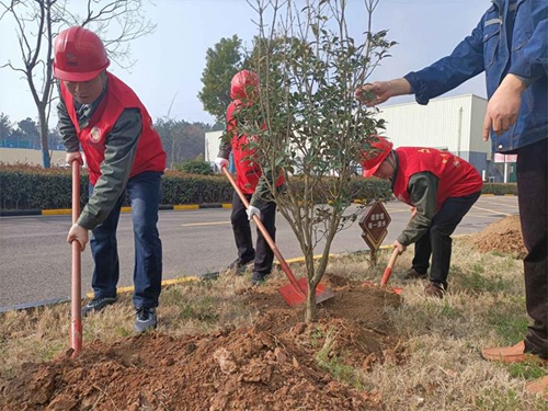 植树现场气氛热烈,大家手拿树苗,挥锹挖土,相互协作。从挖坑整地、栽植树苗,到扶正压实,每道工序都一丝不苟。经过两个多小时的劳动,圆满完成了厂区植树任务。