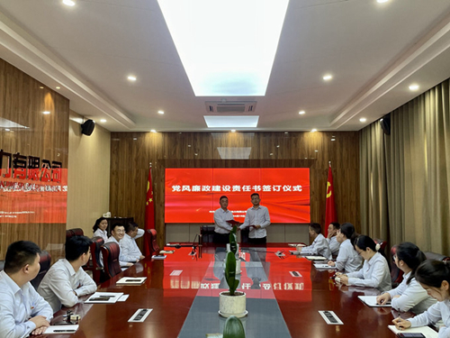 会上还对党员干部进行了警示教育,按照“谁分管、谁负责”的原则,与各部门负责人签订党风廉政建设责任书,中层人员和关键岗位人员签订了廉洁从业承诺书,全面压紧压实党风廉政建设责任。
