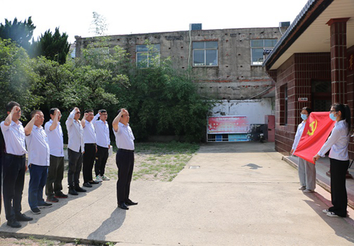 走进烈士纪念馆,全体人员瞻仰了颍上县从第一次国内革命战争时期到社会主义建设时期的576名革命烈士事迹和照片,通过历史图片、文献史料重温了一段段悲壮历史和革命英雄英勇事迹,深刻感悟革命先烈抛头颅、洒热血,不畏牺牲的斗争精神。随后所有党员在党旗前庄严宣誓,重温入党誓词,用高昂、奋进而又庄严的誓词表达了对党的忠诚和热爱。