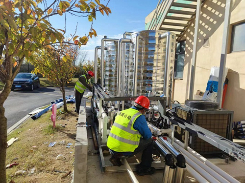 空气能太阳能热水系统为新型能源系统,稳定性高,加热效率快,安全系数高,且十分环保。本次安装的系统由48个太阳能串联而成,包括温度显示控制系统、电热系统、水加压系统及水循环系统等,全年都能保证正常热水供应。经前期冷热水管道改造及设备设施施工调试,现已正式向新老宿舍楼、食堂和办公楼供应热水。