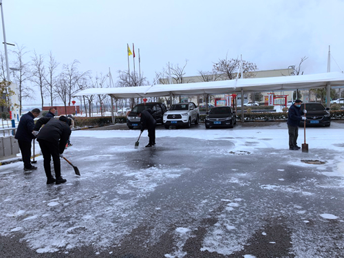 当天早上8点,在公司领导的带领下,大家顶着严寒,拿起铁锹、扫帚等工具,迅速投入到清扫冰雪行列中,对生产、办公区域的主干道以及室外设备、巡检路线和车辆通道的冰雪进行快速有序地铲除,并在台阶、出入口等易滑路段铺设草垫。大家忙碌的身影在皑皑白雪中,构成了一道亮丽的风景线。经过半天的奋战,一条条路面被清扫干净,既保证了道路的畅通,也为职工出行和巡检创造了一个安全有序的环境。
