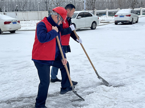 面对风雪挑战,公司广大党员干部带头发挥先锋模范作用,积极清雪除冰,青年团员也积极加入清雪除冰行动,打响了破冰除雪攻坚战。在除冰现场,大家发扬不畏严寒、团结协作的精神,挥舞扫帚、手握铁锹,铲的铲、推的推、扫的扫,分工有序,对厂区主道路、食堂门口、办公楼前后生活区域道路、巡检路线等区域的积雪冰块进行清理。在大家齐心协力、高效配合下,一条条便于出行的安全通道被清理了出来。
