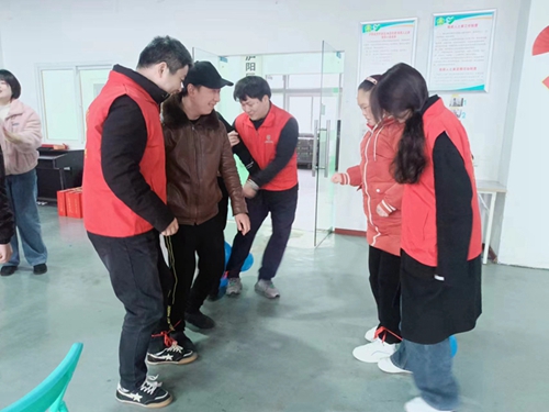 随后,工作人员带领志愿者参观了工作坊,观看了“心青年”的堂鼓表演,并与他们一对一结对开展趣味游戏,在欢声笑语中,员工们脸上多了自信的笑容。