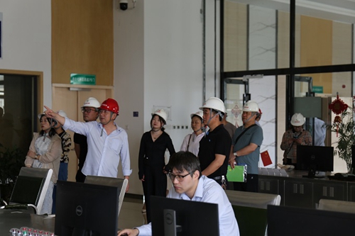 蚌埠公司主要负责人向大家介绍了蚌埠公司建设规模、处置垃圾能力、生产经营现状等情况,并组织观看了相关宣传视频。来访人员先后参观了物流道路、地磅房、垃圾吊控制室、集控室等处。一路上,讲解员向他们详细介绍了垃圾变废为宝的处置流程、烟气处置工艺、飞灰及炉渣处置流程等。