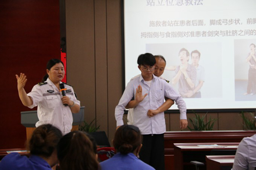 活动中,颍东区卫健委的普法监督员向职工深入讲解了职业病防治法律法规和健康科普知识,涵盖了《中华人民共和国职业病防治法》及职业病的预防与控制要点、职工如何进行劳动防护等多个方面,内容广泛而实用。阜阳市第四人民医院的职业病防治专家为职工带来一场防暑降温的预防和海姆立克急救知识的实操要点流程零距离指导培训。通过生动地讲解和实操演练,进一步增强职工的应急防护意识和实操能力。